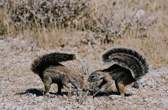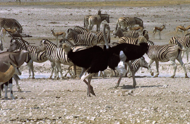 Una danza di due struzzi maschili? Piuttosto un litigio che scoppierà per i bei occhi di una signora struzzo! |