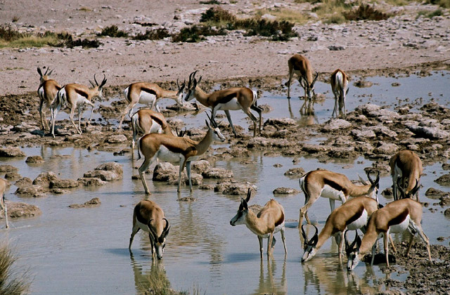 - Dépêchez-vous de boire, les springboks, avant que la mare ne soit sèche !