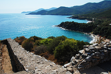 En marchant autour de la colline, on peut trouver de nombreux vestiges de bâtiments anciens et profiter des vues pittoresques sur les rives rocheuses agressées par les eaux vert émeraude et des plages de sable cachés. L'entrée des ruines, gratuite, est situé sur le bord d’Olimpiada, mais la porte principale avec le kiosque d'information est plus au sud. |