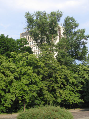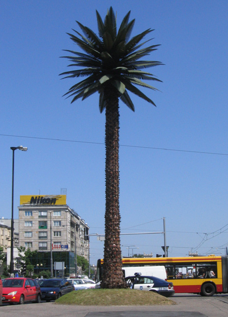 A l'endroit même où la rue change de nom se dresse un palmier (qui ne doit rien à la nature), figure insolite dans une ville d'Europe du nord ! Nowy Swiat s'élargit et conduit au quartier où sont situées la plupart des ambassades, et au plus célèbre parc de Varsovie. | ![]() |