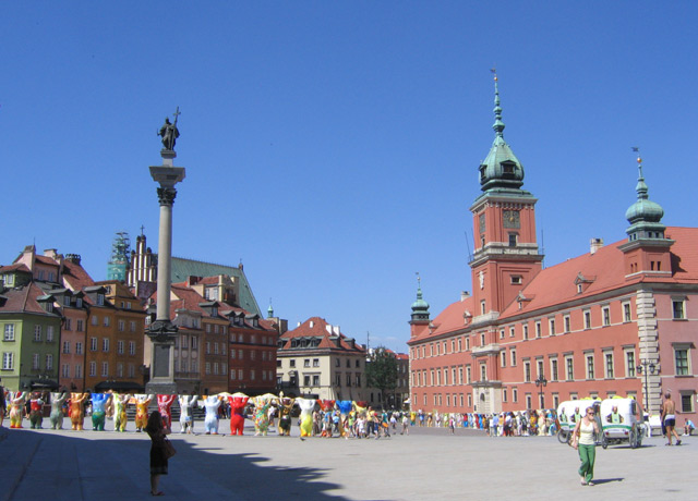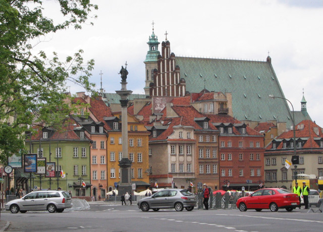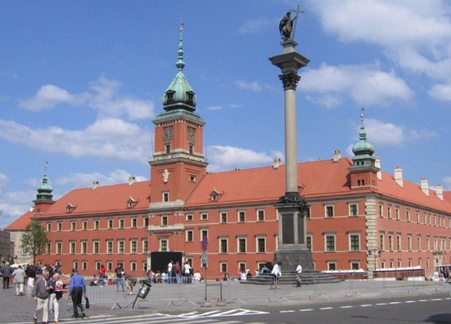 Le château, tout proche, résidence des souverains de Pologne, et la grande place où s'élève la colonne dédiée à Sygmunt IV. | ![]() |
