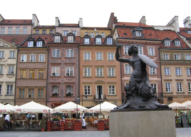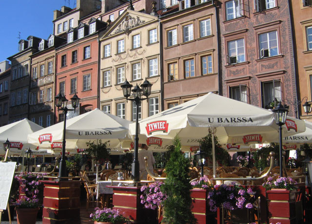 | Varsovie, cependant riche d'un long passé, est la ville où s'empilent des événements forts de l'Histoire récente. On y trouve comme partout des « fast-food », des pizzeria, des hypermarchés, des restaurants turcs ou chinois ; on peut en de nombreux endroits, même à la périphérie, y acheter de la bière ou des cigarettes à 2h du matin. L'ambiance « néo-libérale » qui imprègne la ville d'aujourd'hui aurait de quoi surprendre un voyageur temporel qui l'aurait quittée au début des années 1990. C'est ici qu'il n'y a pas si longtemps les produits de base étaient rationnés et les gens faisaient la queue pendant des heures pour acquérir une tablette de chocolat ou un poulet surgelé. | ||