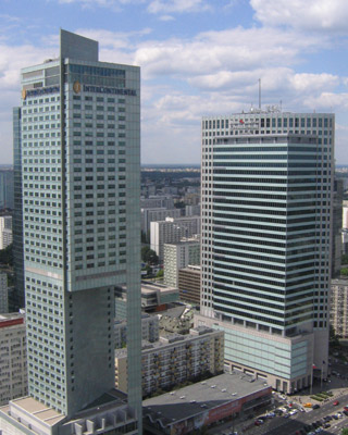 Peu après le changement de régime, il fut question de le détruire ; mais l'idée a été abandonnée et aujourd'hui, le gratte-ciel, monument de l'architecture stalinienne, côtoie les tours plus modernes qui abritent des banques et les sièges de compagnies multinationales… | ![]() |