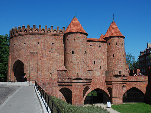 La citadelle. On y pénètre par la barbacane (Barbakan), point de passage stratégique dominé par deux hautes tours rondes et massives. C’est un lieu très animé, fréquenté par les touristes et… les marchands de souvenirs. |