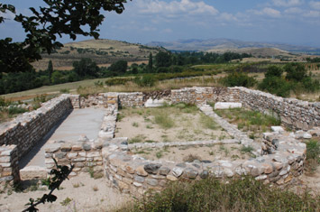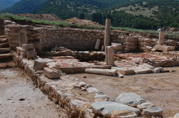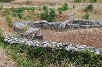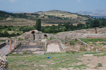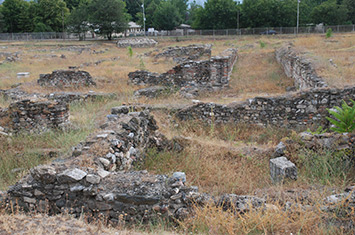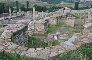 | Des fouilles archéologiques ont mis à jour la rue principale, large de 8,5 m, pavée de grandes dalles, bordée de traces de maisons, de thermes, et d’entrepôts de céréales. Plus haut sur la colline subsistent les traces bien visibles d’une basilique proto-chrétienne des Ve – VIe s., à trois nefs, avec une abside et un baptistère accolé. Sous elle se trouvent les ruines d’un palais plus ancien, datant du IVe s., comportant des fresques murales. Sur la pente de la montagne un grand théâtre, pourvu d’une scène de 100 m de largeur, fut construit au IIe s. Il n’a pas encore été dégagé et est presque totalement recouvert de végétation. | |