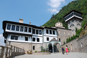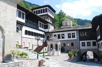 MONASTERE SVETI JOVAN BIGORSKI Situé à 20 km au nord de Debar, aux confins du parc national de Mavrovo, ce monastère est dédié à Saint Jean Baptiste. Son appellation « bigorski » provient du nom du calcaire local qui a été utilisé pour sa construction. Son histoire fut très tourmentée : fondé au XIe s., ruiné par les Turcs au XVIe, reconstruit grâce aux efforts du moine Hilarion en 1743, agrandi dans les années 1812-1825, sa partie la plus ancienne fut en grande partie endommagée par un incendie accidentel en 2009, et fait aujourd’hui l’objet d’une restauration intensive. |