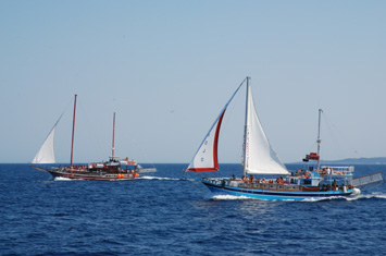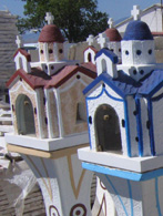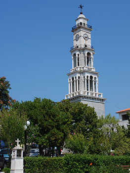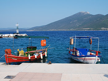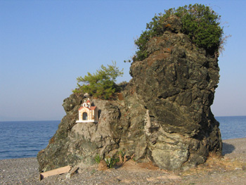 | Non molto lontano dal porto si erge la statua di un marinaio, che trovò la morte combattendo per la liberazione della Grecia dell'occupazione turca, lanciando la sua nave caricata di dinamite su una barca otomano. | |||