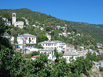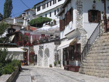 MAKRYNITSA La città, forse il più pittoresco, appeso su un alto versante roccioso. Si possono ammirare vecchie case ricoperte di ardesia, multistadio (terreni in pendenza richiede ... ), le loro pareti intonacate di bianco, le finestre tradizionali e verniciate di decorazioni colorate. Della piazza spaziosa e ombreggiata sotto gli alberi, pavimentata con lastre di marmo dove prevalgono tavolini dei caffè, si può godere il panorama di Volos. Alla confina di piazza è la chiesa del XIII s., con una decorazione interessante sull'abside e nelle vicinanze la fontana in marmo. Molti dei negozi offrono una varietà di ricordi, tra cui molte specialità locali, spezie ed erbe aromatiche. |