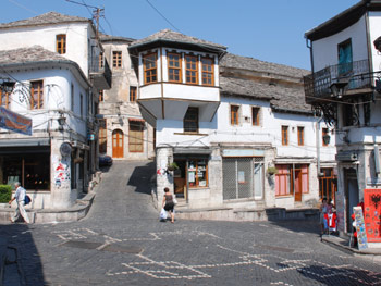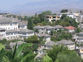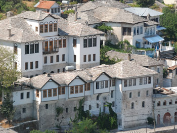 La vecchia città costruita al XVII secolo al piede della fortezza occupa il lato del nord della montagna e presenta un'omogeneità architetturale ben preservata. Tutte le case sono costruite in pietre grigie o dipinte alla calce, coperte di tetti in scisto grigio. Contenevano i caffè e diversi negozi del bazar (all'incrocio di cinque vie) e le più grandi e le alte, costruite dai proprietari terrieri ricchi, fungevano loro da “residenze-giro„ (kule). Alcune di entrato sono aperte alla visita, come la casa Zekate. Gjirokaster è la città indigena del grande autore Ismail Kadare di cui si può vedere la residenza indigena in una via stretta. Ha descritto questo luogo in modo pittoresco in una delle sue opere più famose: “Cronache della città di pietra„. |