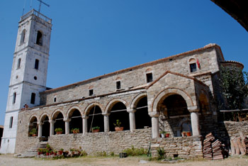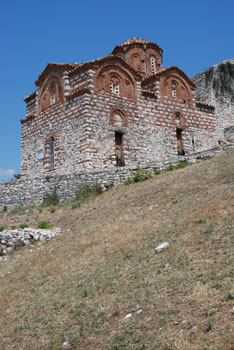 Di questo periodo rimanono alcune chiese bizantine decorate da affreschi. Nella più grande, la cattedrale di Santa Maria, costruita nel XIII secolo e ricostruita nel XVIII, si può ammirare il sontuoso iconostas scolpito in legno di noce, l'ambone e la poltrona del vescovo dello stesso stile. L'edificio attiguo contiene il museo delle icone, soprattutto quelle dipinte da due artisti locali, Onufri e suo figlio Nicola. In cima alla montagna si trova la cittadella del XIII secolo, le cui alte mura con sei torri contengono le rovine del castello. Ci sono una enorme cisterna sotterranea che serviva a conservare l'acqua, un grande cortile e i muri degli edifici ausiliari. In caso di guerra, l'esercito e l'aristocrazia della città vi trovavano rifugio. |