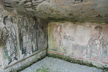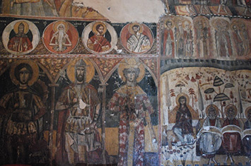 | Accanto alle antiche rovine rimanere una chiesa cristiana del XII s. circondata da un chiostro. Il monastero ospita un museo degli oggetti trovati; stele, statue, frammenti dei rilievi dei fregi, e ceramiche. Costruzione militare nel periodo comunista hanno parzialmente distrutto il sito. Si poteva vedere una fila dei bunker, grandi e piccoli, che si trova su una montagna vicina. |