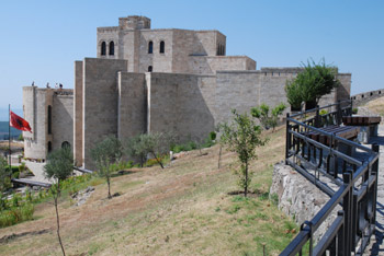 KRUJË Piccola città pittoresca al passato millenario, situata al lato della montagna Skanderbeut, a 30 km al nord della capitale, Tirana. Al medioevo, era la capitale della regione Kastrioti, abitata dalle tribù albanesi derivate dallo Illiri. È in questi casi che l'eroe nazionale Skanderbeg oppose una resistenza efficace al'invasore turco al XVe secolo difendendo l'indipendenza dell'Albania. Vi esiste le pareti della vecchia citadelle, nell'ambito della quale fu costruito all'epoca di Enver Hodxa un castello di stile neo-medioevo che ripara il museo di Skanderbeg e della lotta per l'indipendenza. Nella città, si potrà vedere un museo etnografico, una vecchia moschea ed un hammam. |