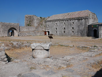 Una strada lastricata condotto della città bassa fino alla porta d'entrata. Si prolunga all'interno del recinto, borda fortificazioni, quindi i resti di una chiesa del XIIIe al XVe secolo, trasformata in moschea e decorata di un minareto dagli ottomani. Quindi conduce alla più alta corte che riparava cisterne, una polveriera, un arsenale, e, all'angolo della parete, un edificio che contiene un piccolo museo e un caffè alla decorazione ispirata della storia. Di questa citadelle si beneficiano da un punto di vista splendido sulla città, un moschea del XVII secolo, la valle e le montagne circostanti. |