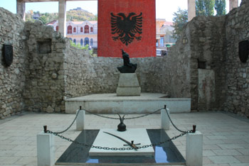 LEZHË Città segnata dalla memoria del più grande eroe albanese, Skanderbeg, che unificò i principi del paese, permise all'Albania di tenere testa al' invasore turco e di fare nascere la sensazione nazionale. Il suo mausoleo monumentale è situato in un parco vicino al fiume, vicino al centro città, alla posizione dell'antiqua città romana di Lissus. La tomba è all'interno della chiesa santo Nicolas, in parte rovinata, le cui pareti sono decorate dei blasoni delle città che furono il teatro delle battaglie contro l'impero otomano. |