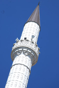 Un'altra stranezza interessante della città: la Moschea, situata vicino alla piazza centrale, che presenta una facciata colorata e un minareto finemente intagliato. |