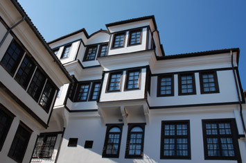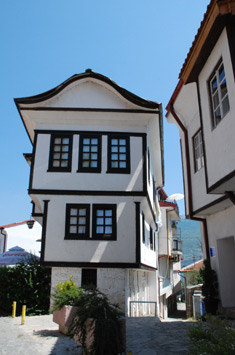 Tra queste chiese si vedono vecchie residenze del XIX secolo ai piani superiori più ampi, che danno ombra sulla via. Due fra esse riparano il museo nazionale che espone raccolte archeologice ed etnografice. All'esterno dei muri si osservano i minareti delle moschea di Ali Pacha e di Abedin. Ohrid è una città turistica piena di ristoranti in terrazza, caffè pittoreschi, negozi che offre molti ricordi. Le strade della città vecchia si animano di notte e ospitare una folla colorata di escursionisti. Ogni anno, in estate, un festival di musica si svolge. |