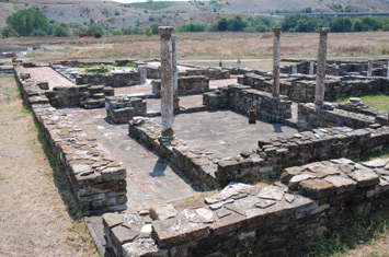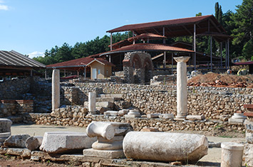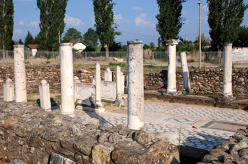 Un po'più lontano si alzava il palazzo del vescovo Téodoso. Ai dintorni si trovavano le case dei patrizi ricchi. Si vedono resti di pareti, fontane, a volte dei pavimenti di mosaico, di molti frammenti decorativi, delle colonne di cui alcune sono verticalmente sulla loro vecchia posizione. All'est del terreno di scavi, c'è un piccolo museo, spesso chiuso. Vicino all'ingresso ed al parcheggio si possono restaurarsi al bar, e comperare prodotti macedoni. |