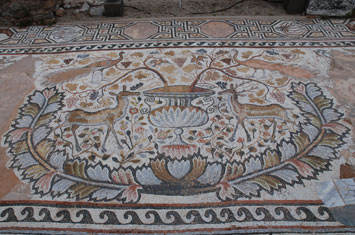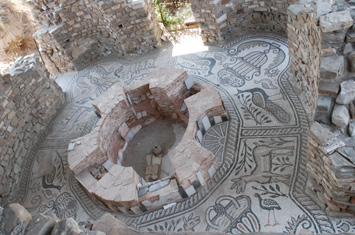 Al periodo proto-cristiano, la città diventa uno vescovato; vi si costruiscono nuovi edifici: la piccola basilica (fine del IV secolo), che possiede 3 navate, un'abside, ed una grande sala con fondi battesimali; la grande basilica alle dimensioni monumentali (V - VI secolo.), sul lo stesso piano ma aumentata di alcune sale collaterali; al suo ovest è stata costruita la residenza del vescovo fornita di numerose parti attorno alla corte centrale. Ovunque il pavimento era stato lastricato dei mosaici alle ragioni molto variate, su temi religiosi, delle rappresentazioni animaliste e floreali, o dei disegni geometrici. |