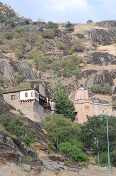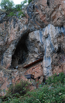 SVETY NAUM Al sud del lago di Ohrid, tutto vicino alla frontiera albanese, al X secolo San Naum fondò la prima chiesa. La chiesa attuale è stata costruita al XVI s. Le pareti interne, coperte di affreschi splendidi (XVI- XVII s.) richiude la tomba del santo. Una vecchia leggenda sostiene che applicando l'orecchio sulla lapide, si possono percepire distintamente i battiti del proprio cuore. Gli scienziati pensano piuttosto di quanto questo rumore è prodotto da un fiume sotterraneo che cola su pietre. |