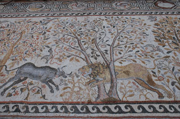 | Le più bello è il mosaico del narthex della grande basilica che presenta su oltre 100 m2 la visione del mondo precedentemente di circondato di medaglioni che rappresentano la fauna acquatica. Questi mosaici, assemblaggi di tegole di 27 colori, costituiscono la più grande ricchezza attraente di Heraclea. Le invasioni slave alla VI secolo hanno rovinato la città. Gli scavi archeologici iniziati da tempo hanno permesso di scoprire in delle stagioni 2008-2009 un nuovo mosaico nella sala del nord, ed i muri della città sul lato sud. Nel sito esiste un piccolo museo che ripara il modello della città vecchia. | ![]() |
