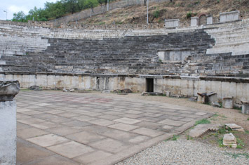 STOBI Questa zona archeologica si trova a 70 km al sud di Skopje, vicino a Gradsko, presso all'autostrada A75 che conduce in Grecia. La città vecchia, situata in un posto strategico, data del IV secolo avanti C. Raggiunge il suo apogeo all'inizio della nostra era. Fu distrutta alla VI secolo da un tremito di terra, quindi i razzias degli slavi. La località è molto ampia; la più grande e meglio conservata delle costruzioni che ripara è il teatro romano, costruito al II secolo per 7600 spettatori. |