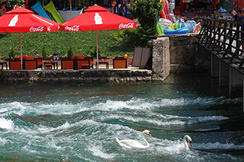 STRUGA Questa piccola città sul lago di Ohrid attraverso Crni Drin fiume che si riversa dentro, d'estate diventa un villaggio con un'atmosfera amichevole. Il centro storico, la cui strada principale è fiancheggiata da case risalenti dai piani ottocenteschi, è il centro della zona pedonale. Ci sono negozi le cui finestre catturare l'attenzione dei passanti con i vestiti alla moda italiana. Caffè, cocktail bar, ristoranti, terrazze coperte di ombrelloni colorati, sono sparsi lungo il fiume sul due percorsi per la spiaggia. |