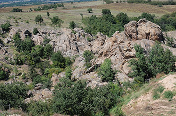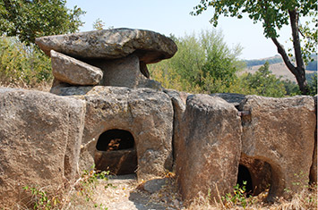 KHLIABOVO Piccola città vicino Topolovgrad sulle pendici settentrionali della montagna di Sakar. Nelle sue vicinanze sono 9 dolmen e altro due monumenti di periodo megalitico (XII - VI s. aC). "Natchevi Tchairi" il più grande dolmen in Bulgaria. Ha un lungo corridoio rivestito con grandi lastre di pietra e perpendicolare due camere, una preceduta da un vestibolo. Il dolmen si trova a circa 2 km a ovest della città. In assenza di pannelli informativi, solo il parcheggio piccolo asfaltato lungo il lato sud della strada chiama a fermarsi. Da lì un sentiero lastricato conduce ai dolmen (5 min). Un tempo era un luogo di sepoltura, probabilmente una tomba di famiglia. Sulla lastra, secondo l'antico costume sono preparati alcuni doni: frutta, caramelle ... |