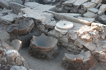 Il culto del dio Asclepio guarigione, praticato in un tempio che è stato dedicato a lui, fu poi sostituito dall'imperatore Settimio Severo. Le sue colonne e lastre di marmo c'è poco, perché un po 'più tardi, una residenza romana è stata costruita su una parte della sua posizione. Bagni pubblici, il centro della vita sociale, occupato una vasta area, e aveva molte camere. |