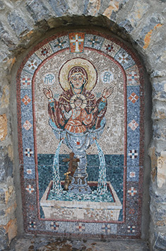 Anche se è stata privata del suo tetto nel corso di tre secoli, ci sono ancora frammenti di affreschi. Gli edifici che ospitano le celle dei monaci sono contemporanei. Vi è una bevanda fontana per i pellegrini, decorata con uno splendido mosaico. Il monastero si trova sulla lista del patrimonio mondiale dell'UNESCO. |