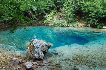 | Ristorante e campo per le tende nella valle di Grbaje | Il piccolo lago carsico "Savino Oko" nella valle Ropojana |