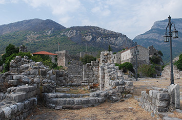 Il sito della vecchia Dioclea ora occupa un territorio enorme pianeggiante che si estende fino alle pendici delle colline che la circondano, ma non è stata ancora completamente scavata dagli archeologi. I resti delle mura a livello del suolo che definiscono un foro rettangolare nel quale possiamo vedere frammenti di colonne scolpite, capitelli, fregi e cassetoni di soffitto. Da un lato sono visibili le fondazioni di portici e al angolo quelle di una basilica bizantina. Si segnala il sistema di approvvigionamento idrico è costituito da canali rivestiti con lastre di pietra. Diversi anni di scavo saranno tenuti a cancellare tutto e aggiornare una panoramica del sito. |