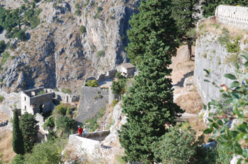 KOTOR La città che dà il suo nome alla regione, precedentemente un porto molto importante, situata al piede degli alti cime del massiccio Lovcen, è stata fondata dai greci. Ha in seguito appartenuto all'impero bizantino, quindi è passata sotto la sovranità di Venezia, e della monarchia austro--ungherese. Tra gli ultimi due secoli, ha conosciuto molte confusioni causate dalle guerre europee ed i trattati politici. Ciò che colpisce l'ospite è il muro rinforzato datando del medioevo che circonda la città, fornito di tre porte d'entrata, ed i muri massicci che montano in zigzag fino alla citadelle, situata 260 m più sù. Permetteva di proteggere la città contro le incursioni turche. |