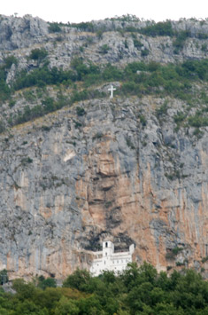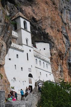 MONASTERO DI OSTROG Sospeso nella parete di un'alta scogliera che predomina la valle del Zeta, tra Nikišic e Danilovgrad, questa costruzione ortodossa è un luogo famoso di pellegrinaggio ed una delle curiosità più visitate del paese. Ripara le reliquie molto venerate di santo Basil che attirano folle di credenti. I suoi fondattori hanno approfittato della presenza di una grotte nella parete, a 900 m d'altitudine, per costruire il monastero nel XVII s. Una strada sinuosa e ripida conduce al monumento la cui facciata bianca si vede da lontano, e questa offre una vista eccezionale sulla valle. |