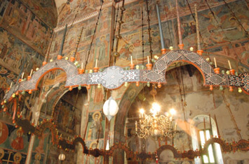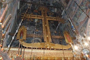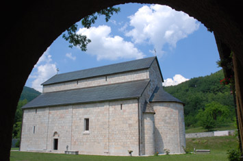 MONASTERO DI PIVA Costruito al XVI s. vicino al fiume Piva, in un luogo che è oggi immerso in seguito alla costruzione di una diga elettrica. Questo monastero, a causa del suo valore culturale ed architetturale è stato mosso e ricostruisce, pietra da pietra, in un posto più elevato, ad alcuni km al sud di Plužine. Le pareti, coperte di affreschi splendidi, e le volte, hanno così potuto essere salvate. Sopra lo iconostase, un croce imponente dorato attira l'attenzione, come pure uno lampadario alla corona finemente decorata alla quale sono sospese uova di struzzo! |