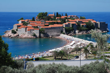 SVETY STEFAN Questo vecchio villaggio di pescatori situato a 20 km al sud di Budva, circondato di fortificazioni medievale, con la sua situazione ed il suo aspetto pittoresco, è “una cartolina„ inevitabila della costa montenegra. Dopo la seconda guerra mondiale, le case abbandonate furono rinnovate, ed riconvertite in hotel di grande standing. Ci si accede per il parco Milocer, foresta di pini sparsa di residenze lussuose. |