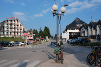 ŽABLIAK La capitale della regione montagnosa del parco di Durmitor, forne delle infrastrutture necessarie. Comprende alcuni hotel ed alberghi, una panetteria, una posta, dei ristoranti e bar, un mercato commerciale, dei negozi d'affitto di materiale di sport, invernali o estivi. Grande hotel che datano dell'epoca “yugoslava„ vi rasentano le vecchie case di stile semplice e montano. Le pensioni costruiti in legno decorato alloggiano i turisti al nord dell'agglomerazione, sulla strada di Crna Gora, e simili residenze si costruiscono al sud, vicino alle ski-lift di Savik Kuk. Alcuni campeggi situati al piede della montagna, alla partenza delle vie segnalate, facilitano le escursioni pedonali. Al'inverno, Žabliak diventa una stazione di sport famosa. |