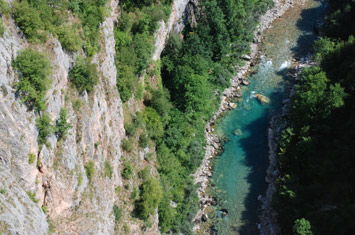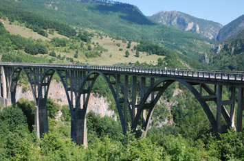 VALLE DI TARA Su un percorso di 82 km, scorrendo tra gole dei pareti verticali di calcare, che raggiungono fino a 1300 m d'altezza, la valle di fume Tara è la curiosità geologica del nord del Montenegro. Vicino al villaggio Djurdevica, un ponte spettacolare di 5 arcate, costruisce nel 1940, sospeso all'altezza di 172 m collega le due rive rocciose, distinte di 366 m. Si dispone di una vista eccezionale sulle acque verde che colano in giù. Una strada borda il fiume, del quale si può a tratti osservare il corso d'acqua attraverso gli alberi ed arbusti che lo delimitano. Nel luogo dove la valle si allarga più si erge il monastero ortodosso di Dobrilovina, che cela bei frammenti di affreschi che datano del XVIo s. Sulla sezione più pittoresca di Tara gite in canoë o rafting sono proposte ai turisti cercanti di emozioni forti. |
