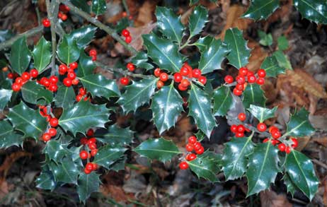 OSTROKRZEW (ilex aquifolium) Krzew wiecznie zielony, o rozłożystych gałęziach, wyrasta do kilku metrów wysokości. W formie drzewiastej może osiągnąć 10 m. Może zyć nawet 300 lat. |